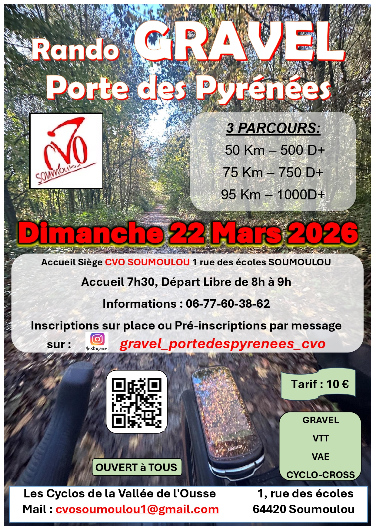 Le club CVO de Soumoulou vous donne rendez-vous pour sa rando Gravel “Porte des Pyrénées” !